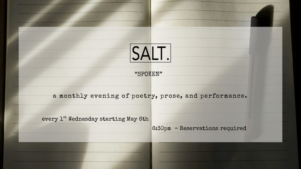 Join us for Spoken Night at SALT, a recurring monthly event held on the first Wednesday of every month at 6:30 PM. Each evening features a thoughtfully curated mix of poetry, literature, monologues, and short theatrical works, with rotating hosts and themes that make every gathering feel fresh and unique.